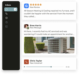 - View and respond to all messages (Facebook, Google, SMS, and more) from a single inbox, with AI ensuring faster, natural responses